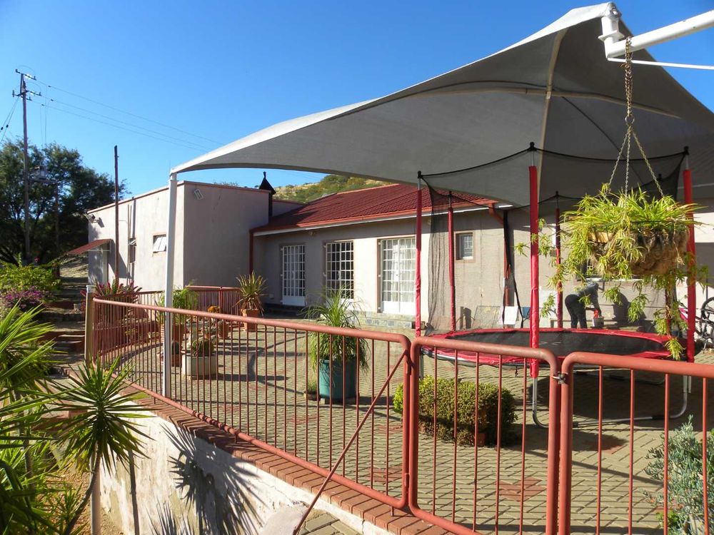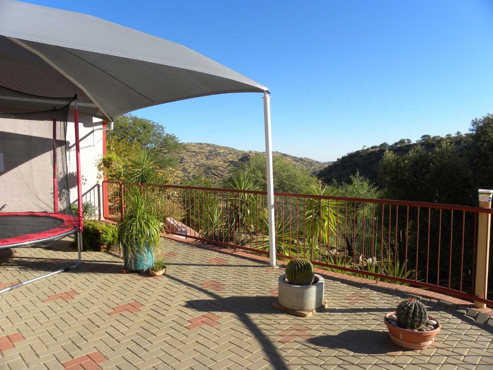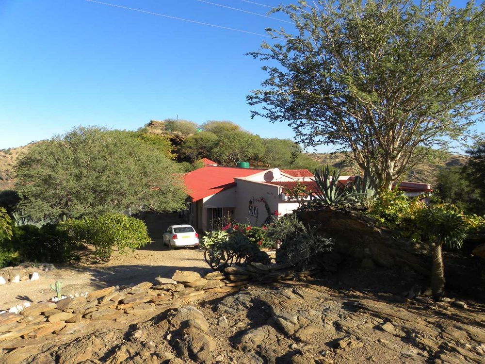 OUTBUILDINGS: 78 m2 Consisting of double garage as well as a flat with one bedroom, a kitchen, and a shower-toilet, as well as a storeroom. MINORS : Alarm (connected to G4S) Boundary fencing and palisade, 4 x Water tanks and two pumps, Paving, Net carports (2). Game drinking trough. BEAUTIFUL VIEW ! Owners relocating to Swakopmund. PRICE NEGOTIABLE. CURRENT VALUATION 4.7 MIL SELLING AT N$ 3 950 000.00 Excl Costs
