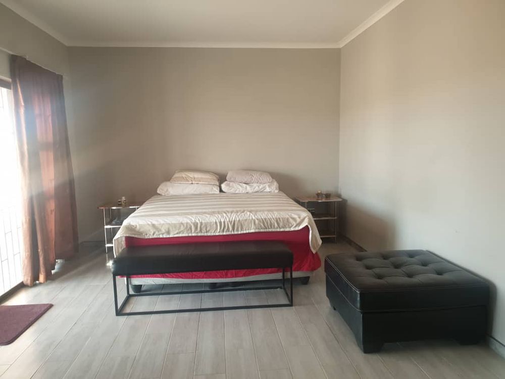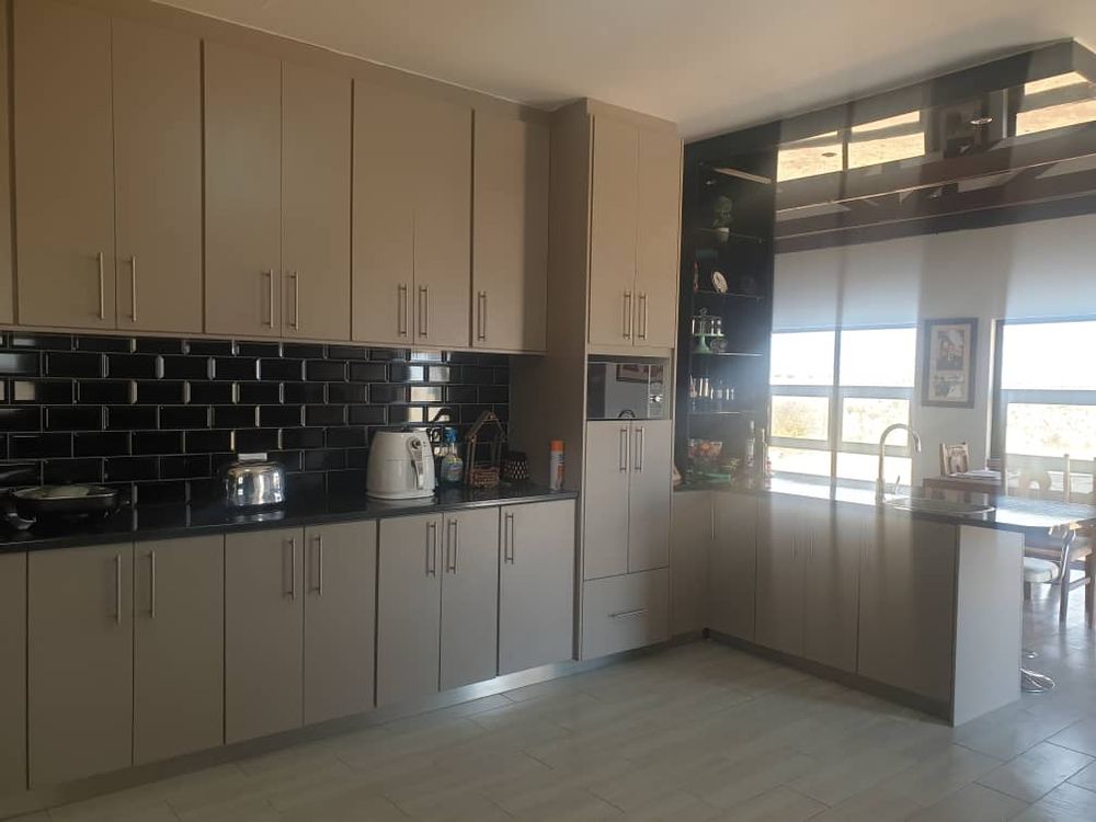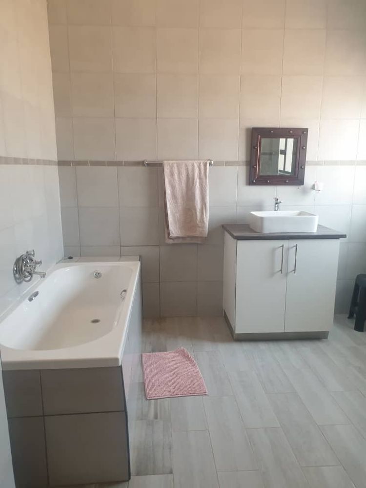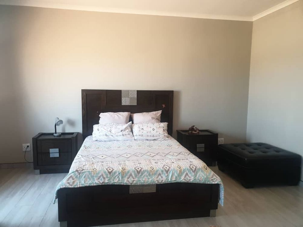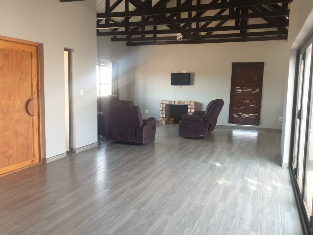 The first house comprises two bedrooms with en-suite full bathrooms, an open-plan kitchen, a spacious lounge, and a dining area with a scullery and pantry. Step outside to enjoy the large veranda, complete with a Boma and rustic braai area. The second house offers three bedrooms, including two with en-suite bathrooms, as well as a guest bathroom. The open-plan layout seamlessly connects the kitchen, dining, and lounge areas for comfortable living.
