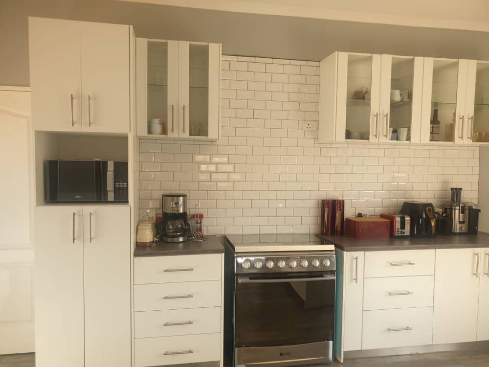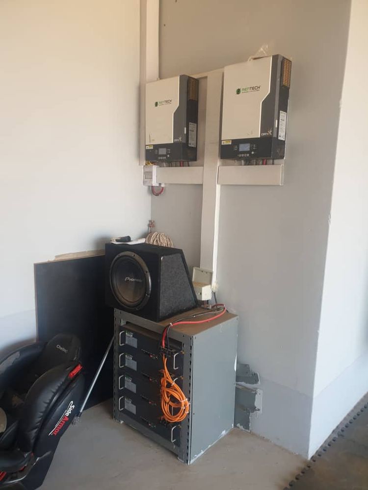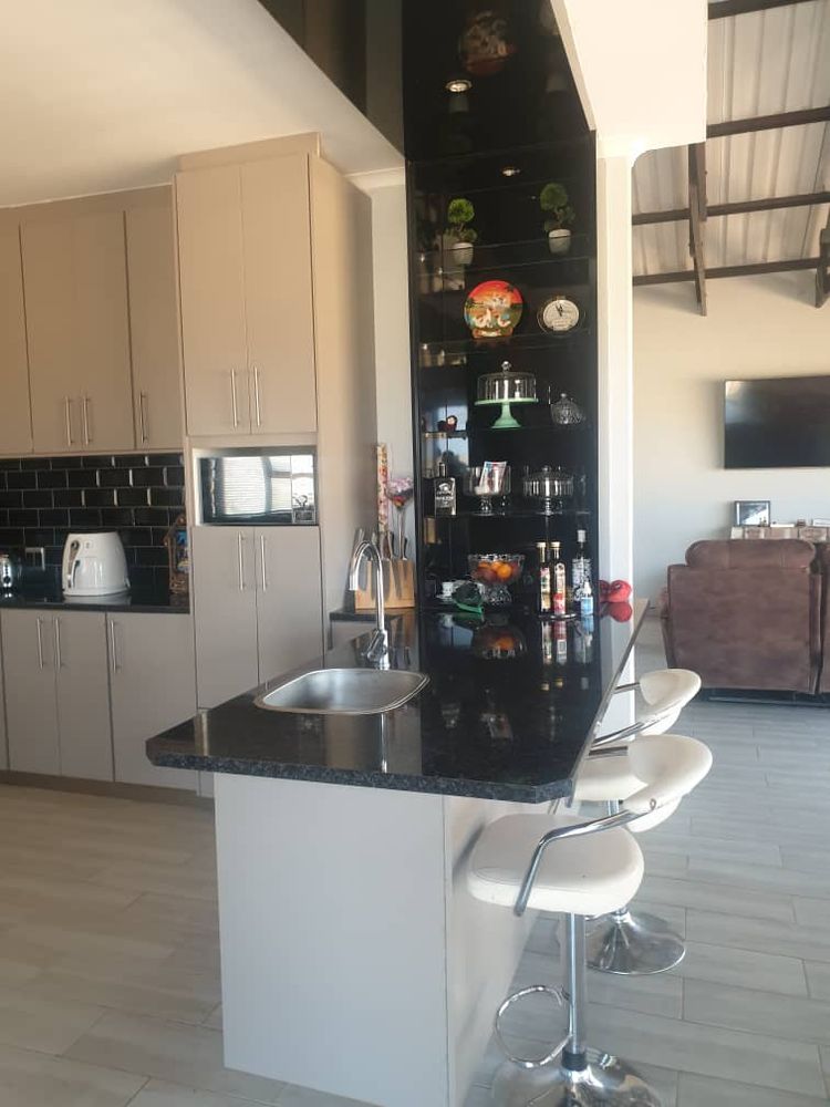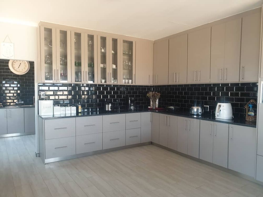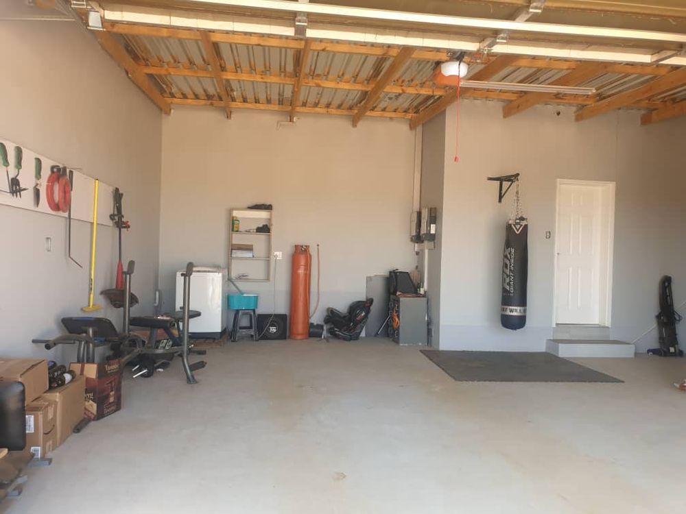 Both homes share a double garage with extra space for garden tools and the included 10kW solar system. The property is self-sufficient with borehole water and a 10,000-liter water tank, making it off-grid and environmentally friendly. Security features include fenced grounds and auto-sensing lights for peace of mind during the night.