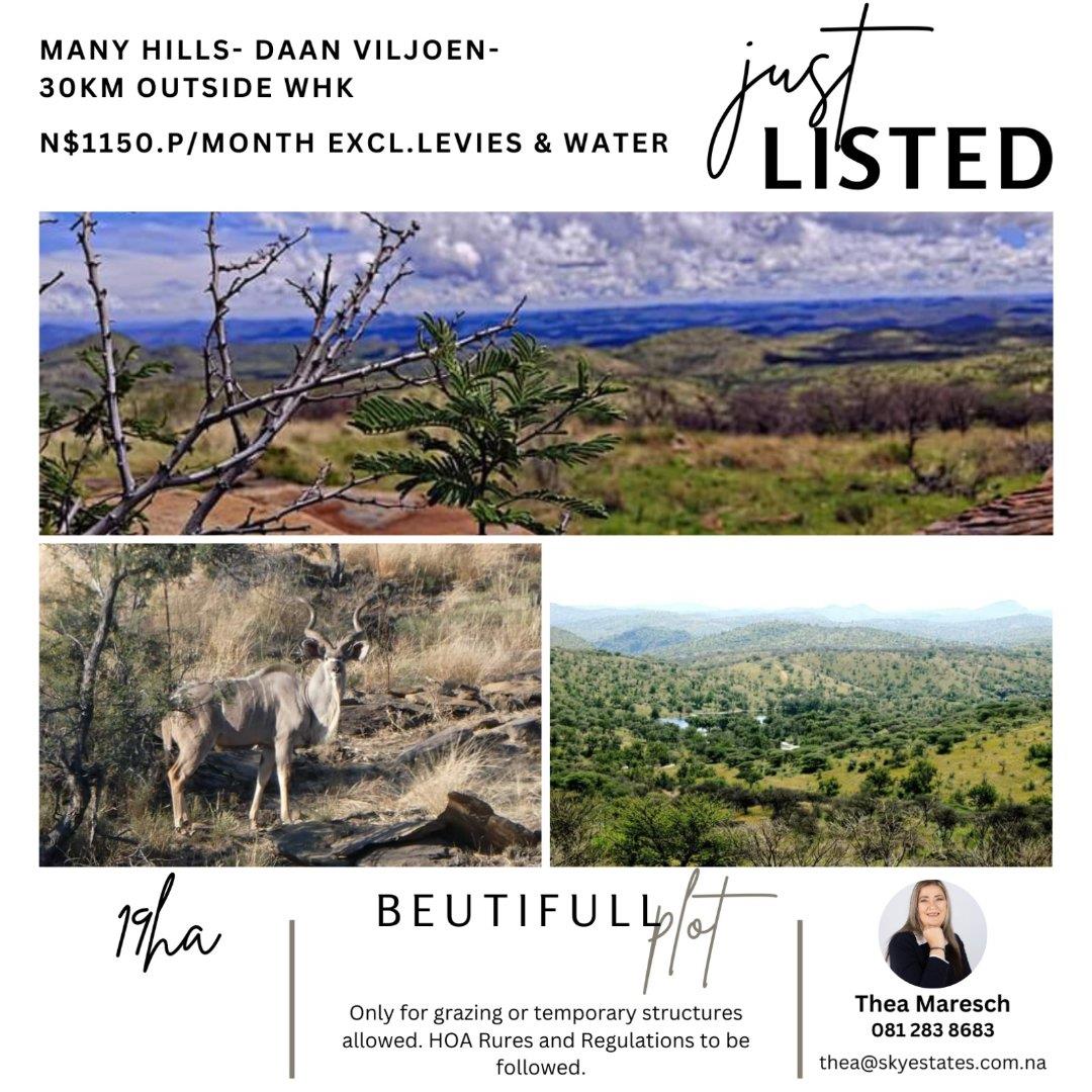Discover 19 hectares of pristine grazing land in the picturesque Daan Viljoen area, perfect for your livestock or a weekend get away campsite, only temporary structures allowed. At just N$1150 per month ((Excluding levies (N$1200 p/m) & water)), this plot offers endless possibilities.