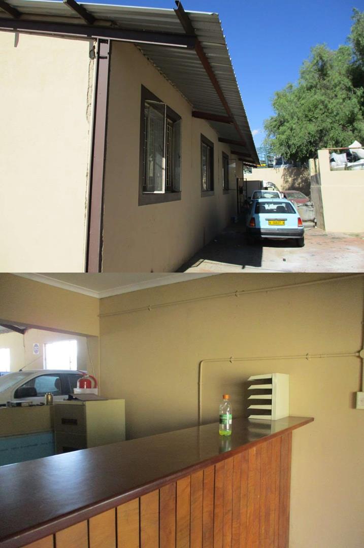 Large warehouse area 595m2 , storerooms and some ablutions-106m2 Office area consist of a reception, office, kitchen, ablution and storerooms on the ground floor. the first floor consist of an office and 2 storerooms. 146m2IBR warehouse/storage area. In good condition . Paving & palisade fencing- Selling as per Nov 2021 valuation N$ 5.8mill- CC Registered. Available 1 Dec 2021 2 entrances to warehouse- parking area & courtyard. Zoning: Industrial bulk of 1 and a coverage of 70%. 3 Phase Electricity - aircon -alarm