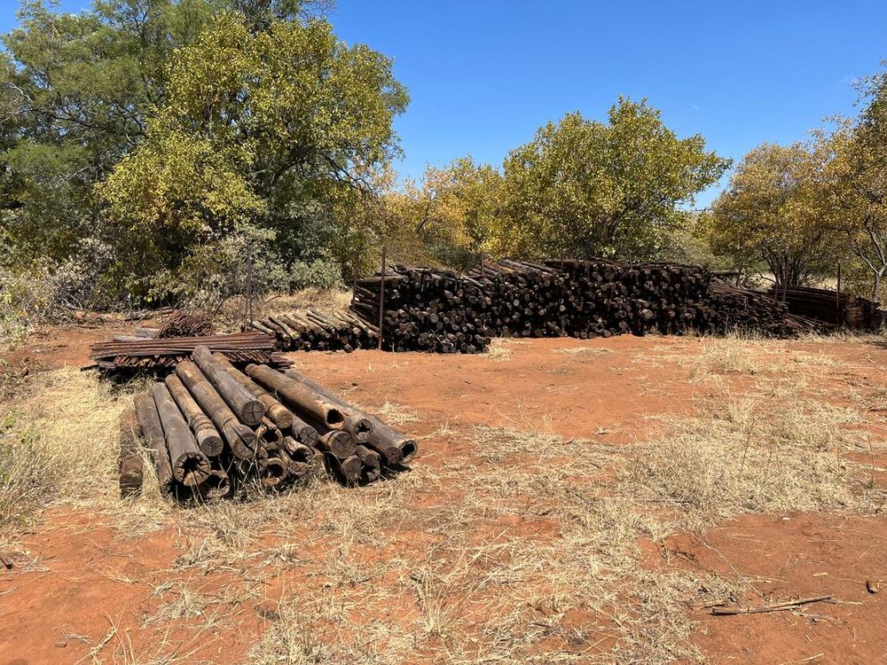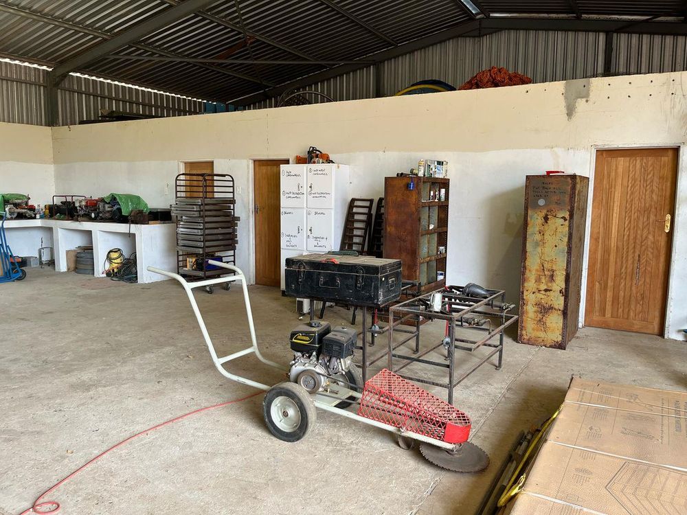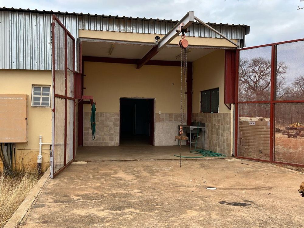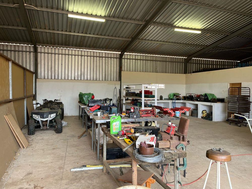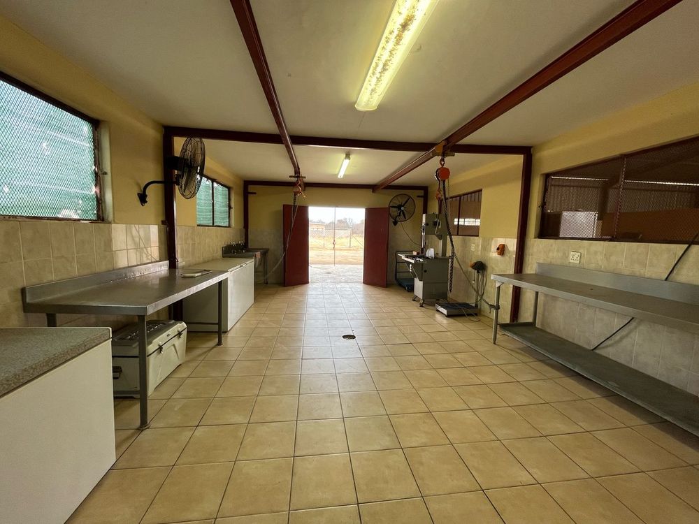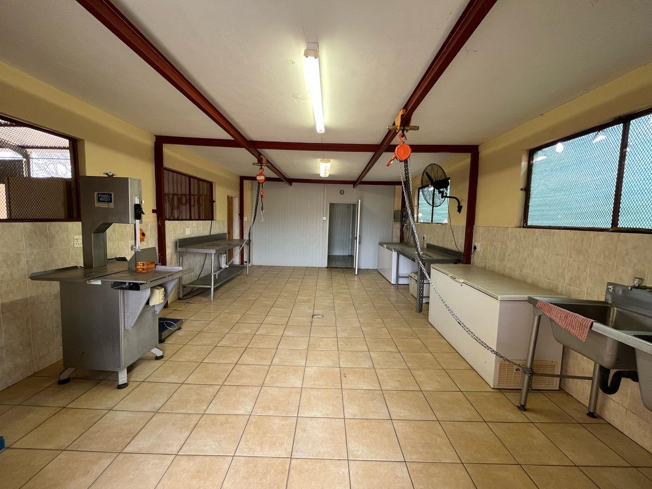 Experience the convenience of a full-scale butchery with a large walk-in cooler room, bandsaw, stainless steel tables, basins, chest freezers, fans, off-load ramp, pulleys, and equipment. Building materials for staff housing are also included.