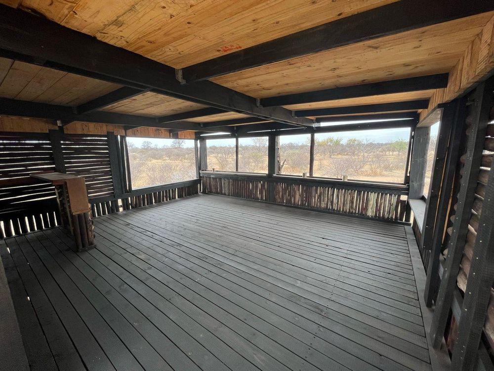 Access the property through two electric entrance gates. Enjoy wildlife with three cement pans for game viewing (two natural pans are solar pump-fed or house pump-fed). A wooden closed deck provides an excellent vantage for animal viewing and includes a bar area.