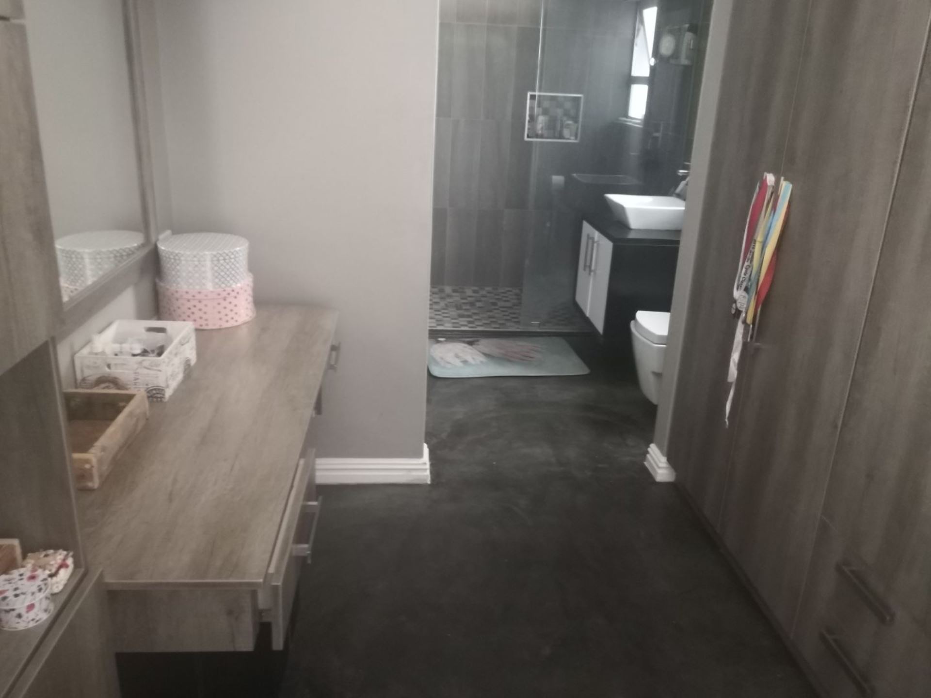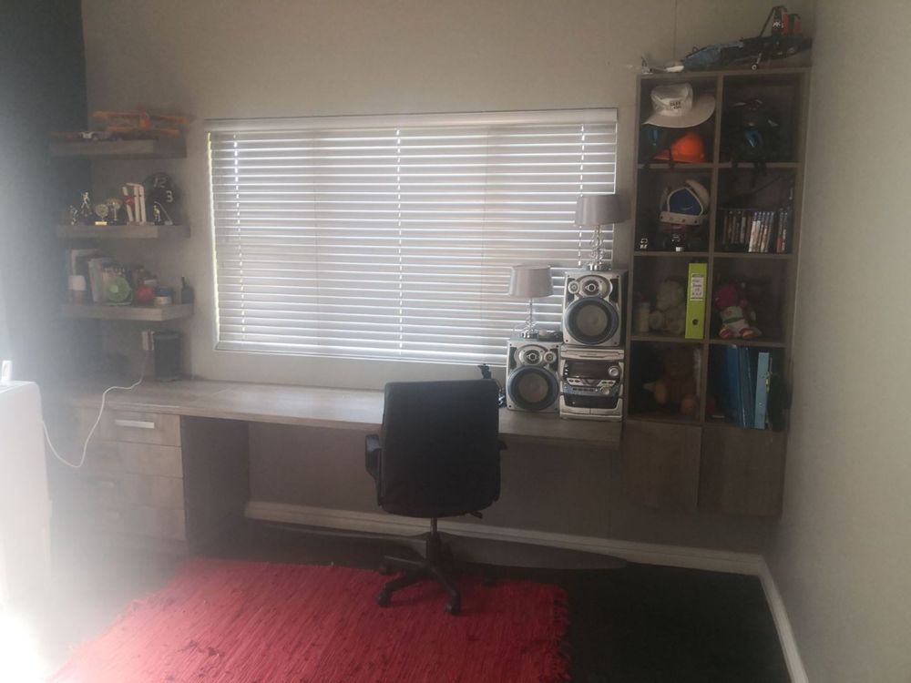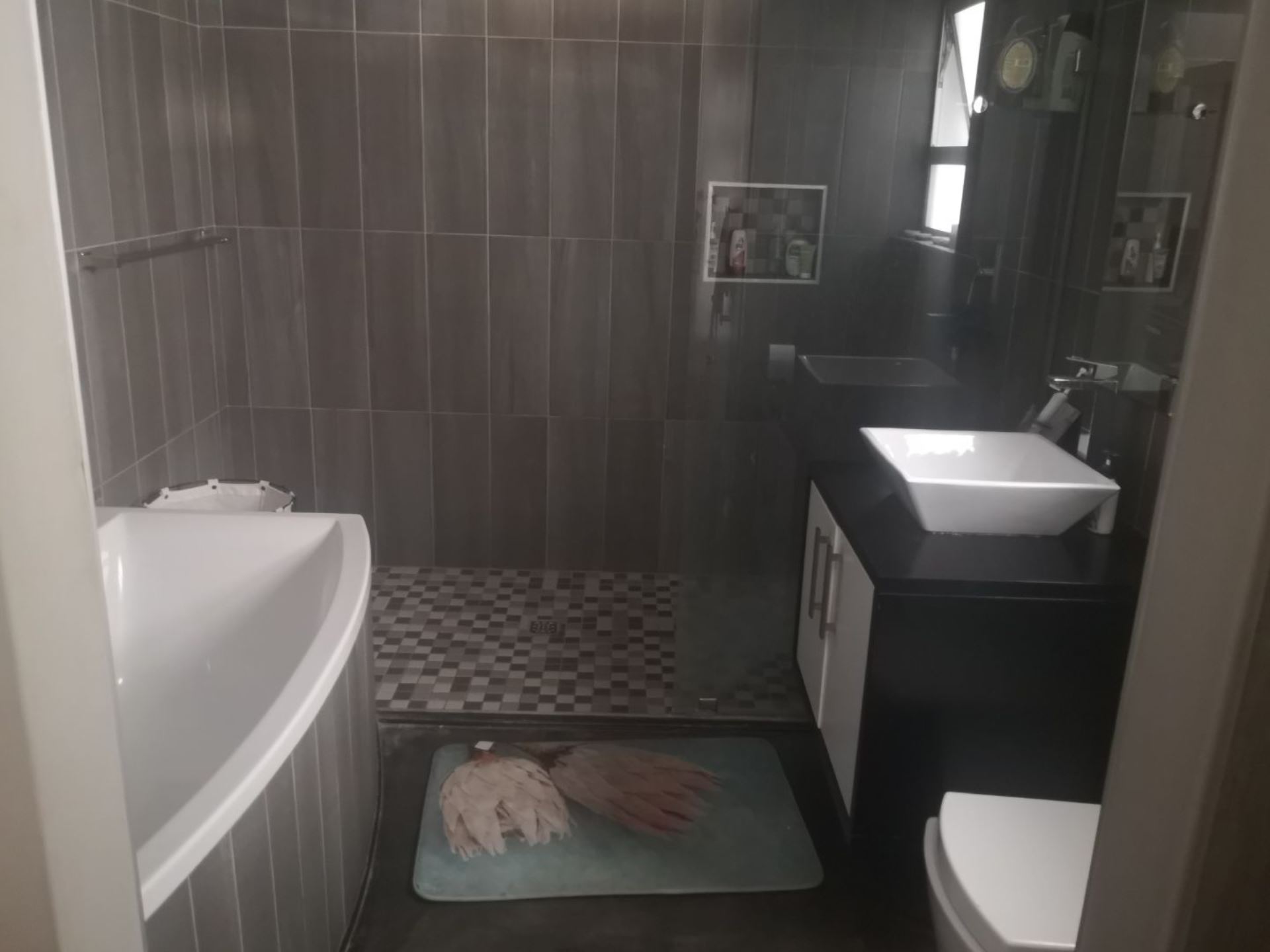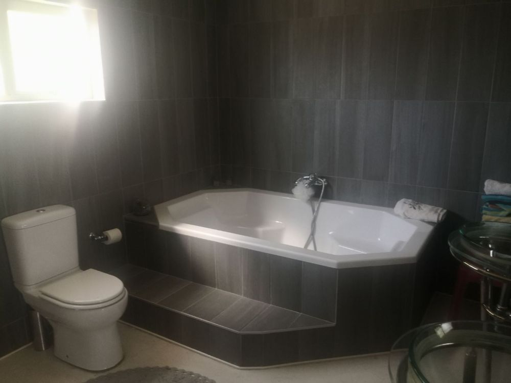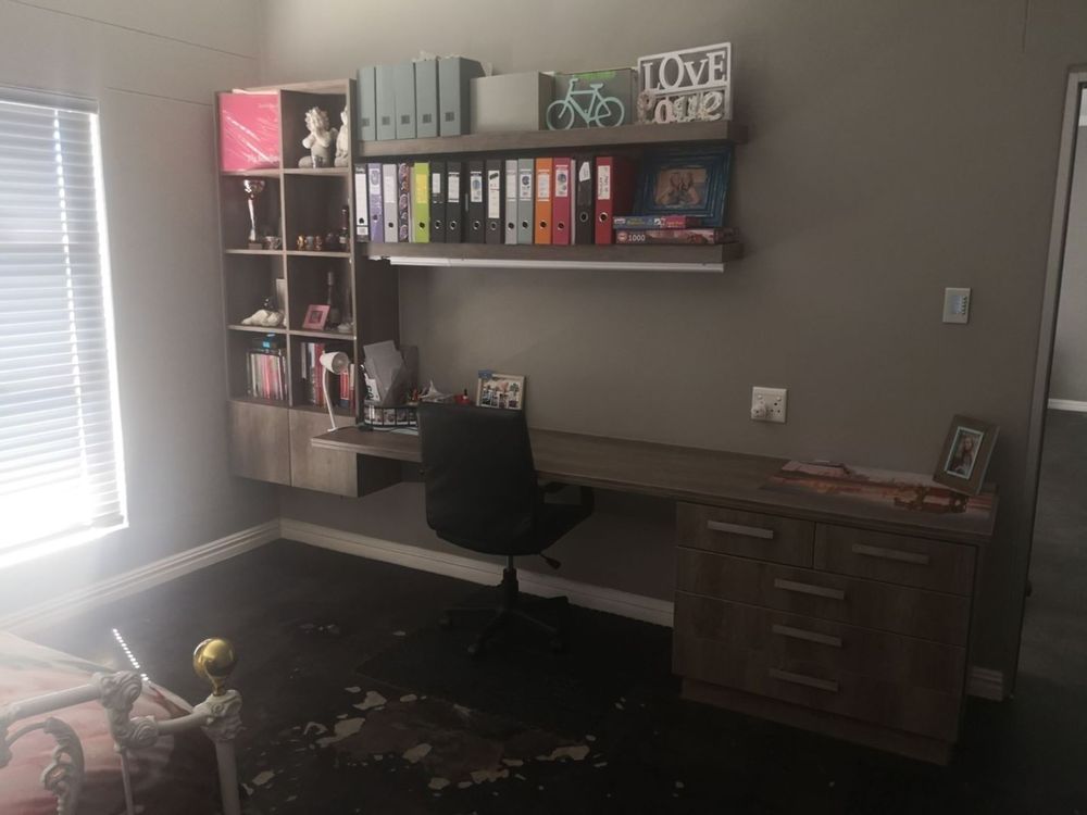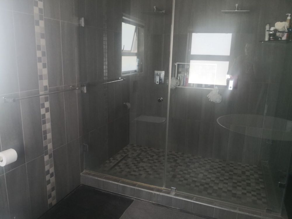 Double garage with additional tandem single garage-all in one-automated wooden'Coroma' doors fitted.-Self-contained Flat with Open Plan lounge/kitchen,1 bedroom and 1 shower/toilet/hand washbasin.(vacant) Balcony,Verandah,Salt concrete swimming pool with Jacuzzi combination,300lt solar geyser,double carport,artificial grass,security beams,sleaves for CCTV,3 x heating/cooling 'GREE' A/C units, 2 x remote gates,intercom system,electric fencing,UPS Alarm and home automation system.