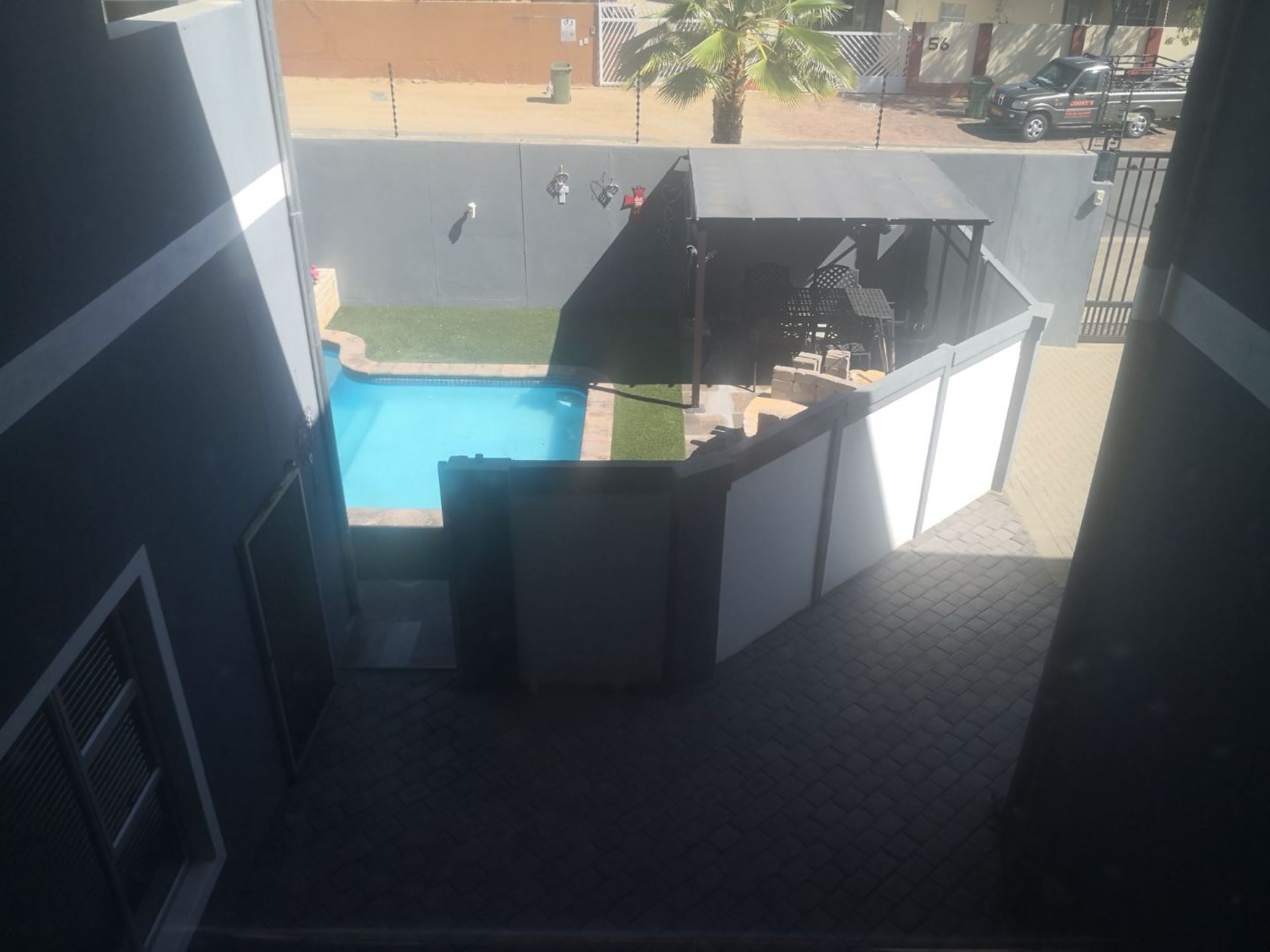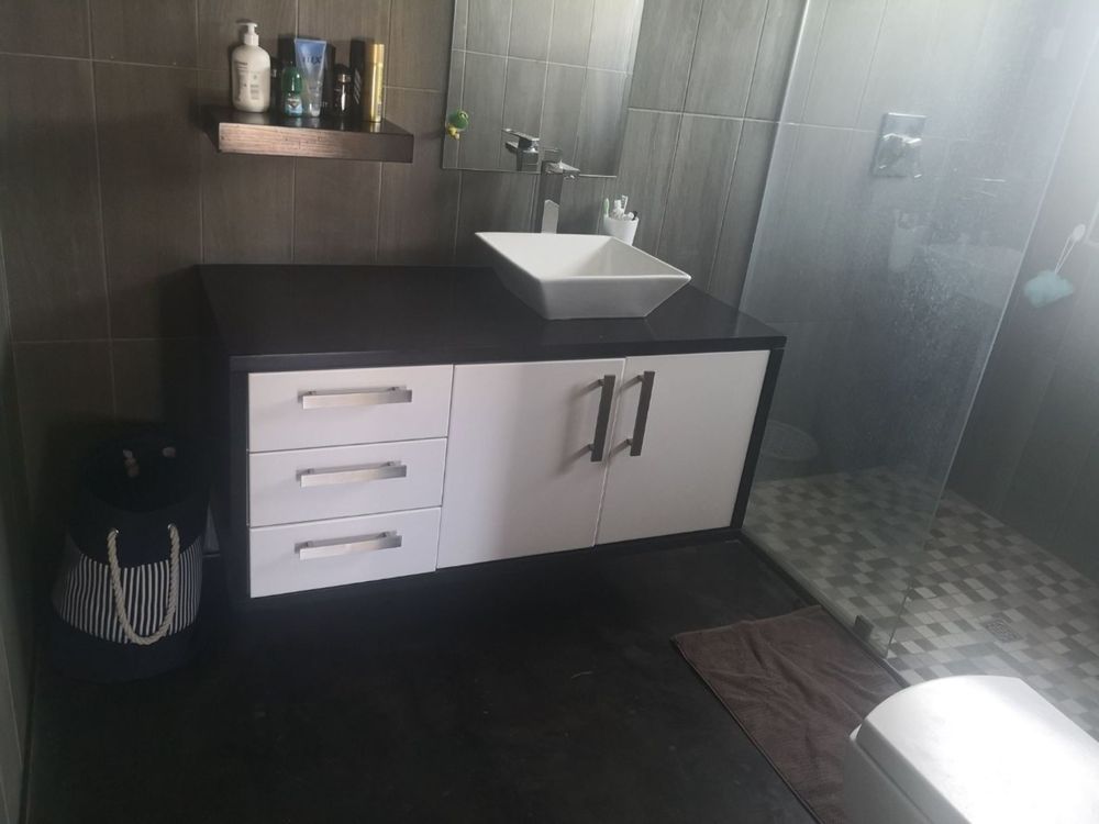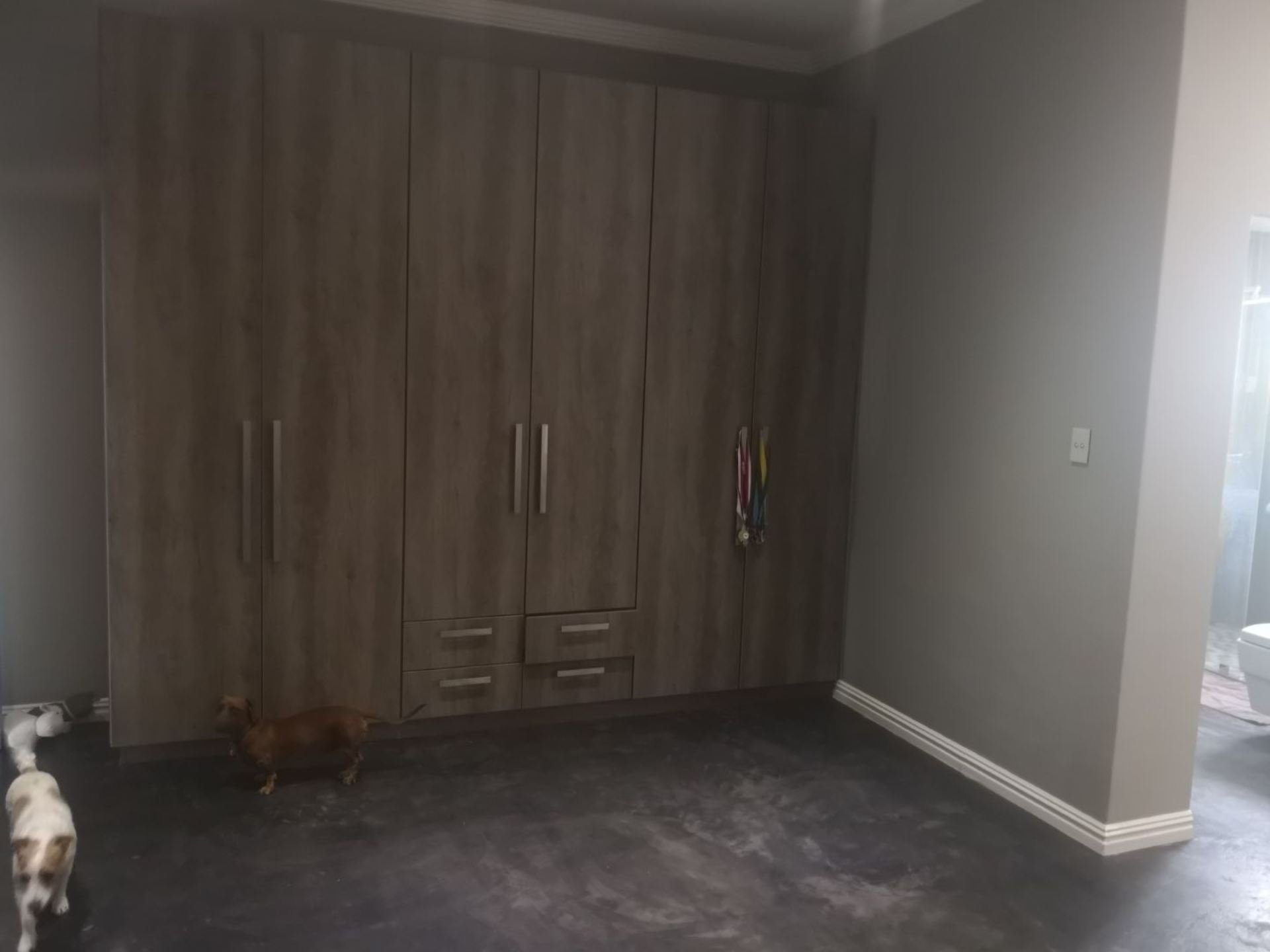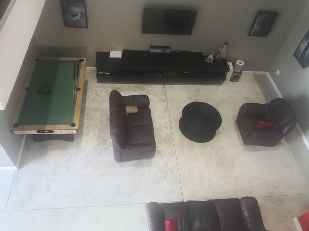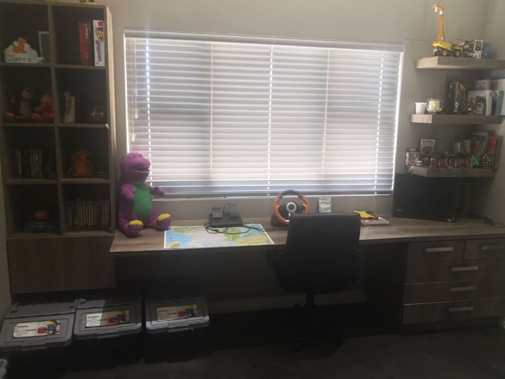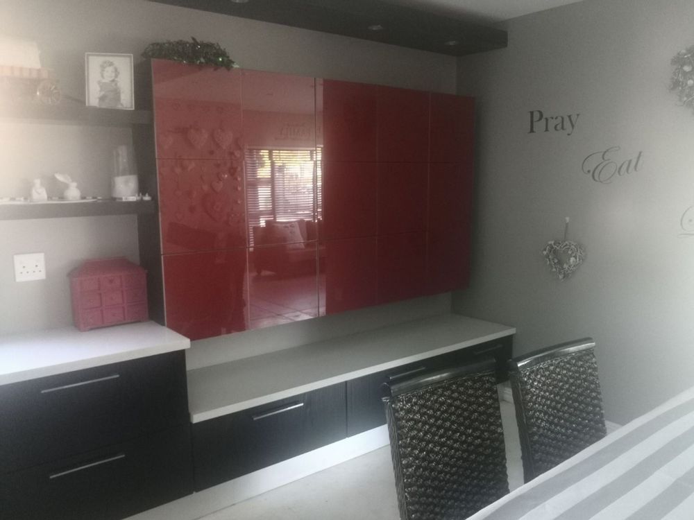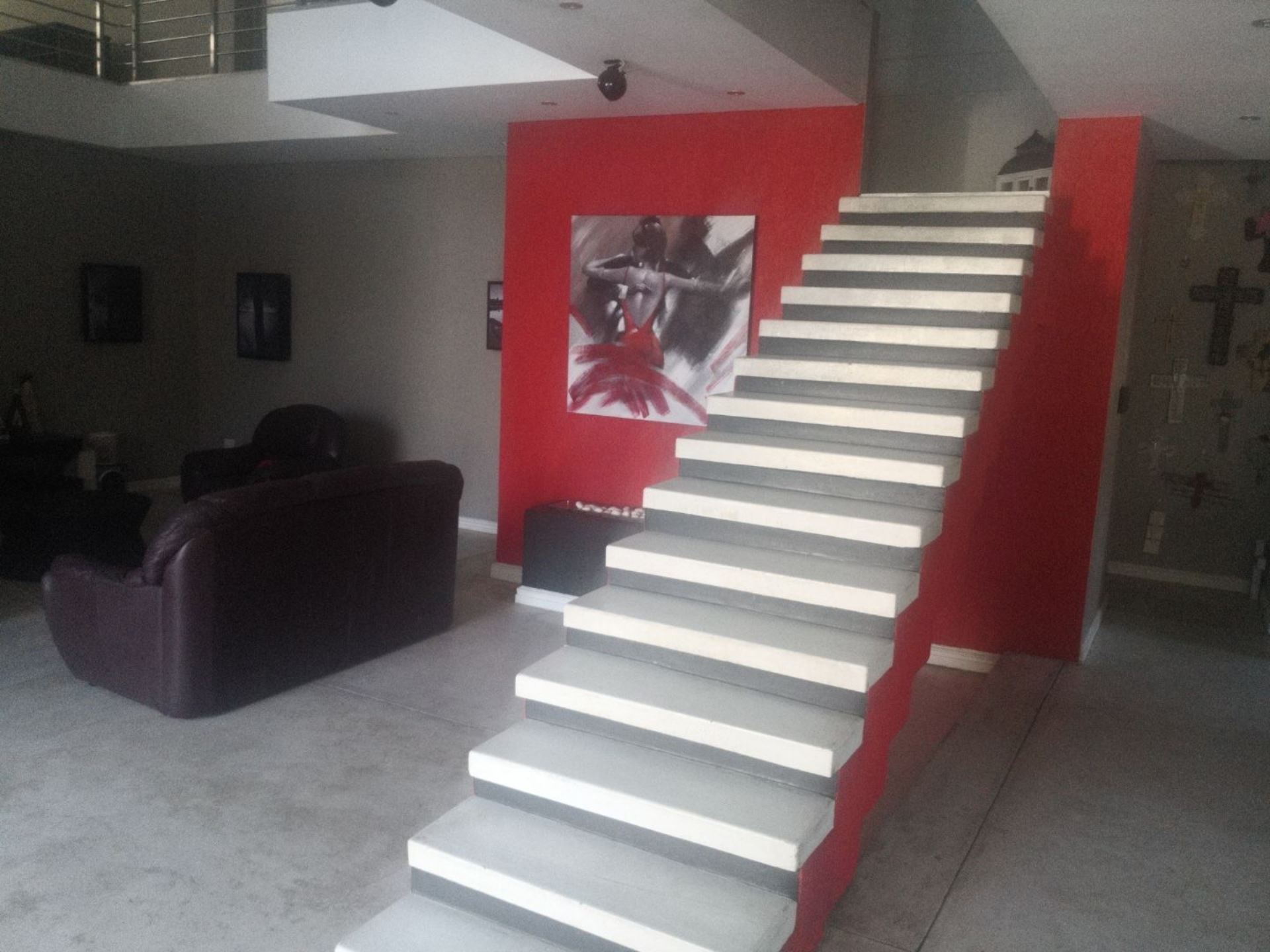 Double garage with additional tandem single garage-all in one-automated wooden'Coroma' doors fitted.-Self-contained Flat with Open Plan lounge/kitchen,1 bedroom and 1 shower/toilet/hand washbasin.(vacant) Balcony,Verandah,Salt concrete swimming pool with Jacuzzi combination,300lt solar geyser,double carport,artificial grass,security beams,sleaves for CCTV,3 x heating/cooling 'GREE' A/C units, 2 x remote gates,intercom system,electric fencing,UPS Alarm and home automation system.