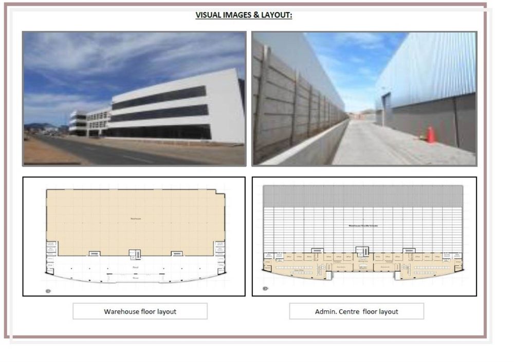 Ground floor retail area 1,318m2-Covered front entrance stoep, 2 Large open retail areas, 4 Offices, 2 Record rooms. First Floor: Office area 1,208m2-Administration/Operations Division Including: 14 Offices, 2 Open office work areas, 2 Board rooms, 2 Kitchens, 2 Client lounges, Reception, Waiting area, 2 Server rooms, 2 Record rooms, 4 Small stores, 2 Balconies, Service areas. Back of premises-warehouse area 3,835m2 -3 Very large warehouses, 2 Female ablutions, 2 Male ablutions, 2 Kitchens, Service areas. Interlink friendly drive through. 1 loading bay. Parking Provided: 135 bays .Lease agreements in place