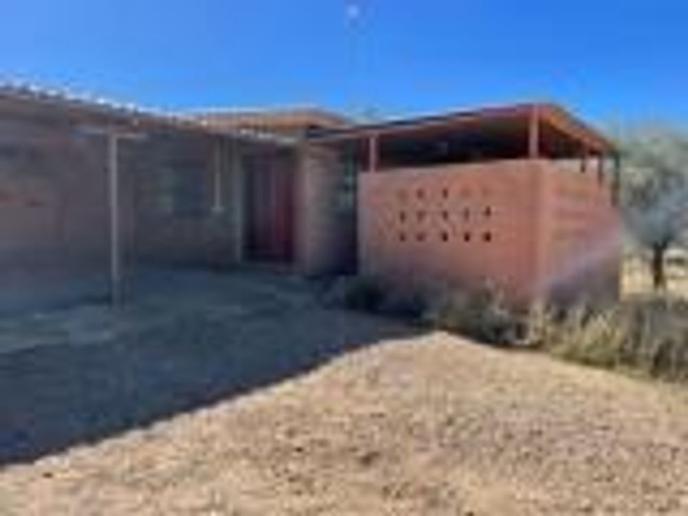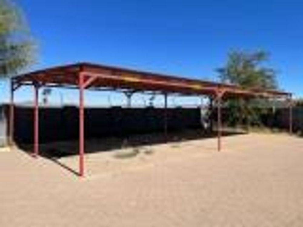 Covered patio with BBQ (25 m2), lounge with fitted kitchen, 1 bedroom with en-suite bathroom and double carport (42 m2).