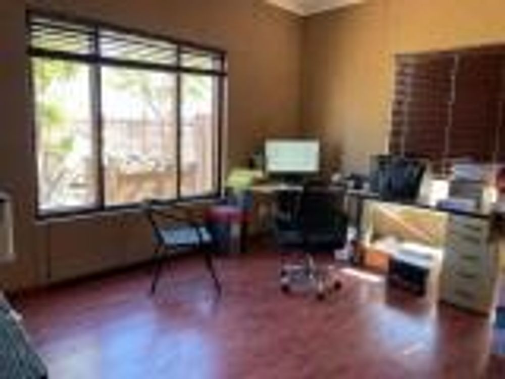 Ground Floor: Covered front entrance (20 m2), reception/waiting area, 4 air-conditioned offices, Vault, staircase, fitted kitchen (air-conditioned) and Ablutions: 1x (2separate WCs + 1 basin) and 1x (1 WC + 1 urinal +1 basin).