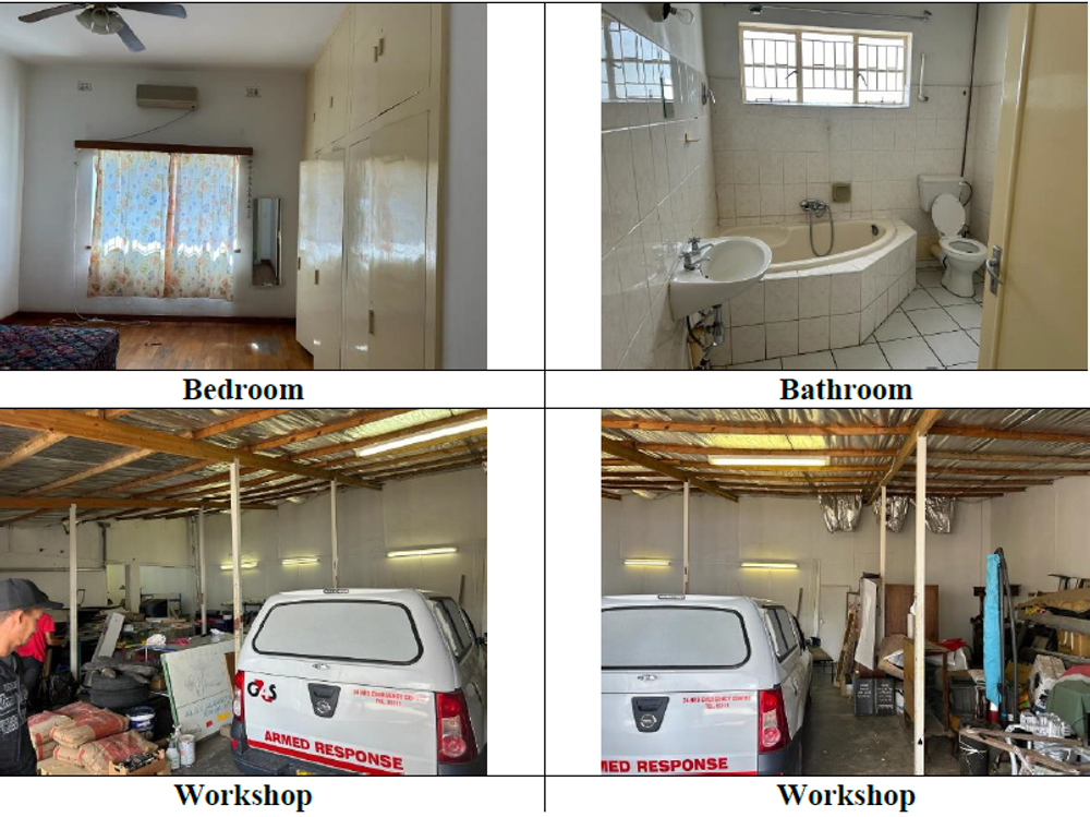 The outbuilding consisted of a single garage, a workshop, an office, a kitchen, and ablution facility.
